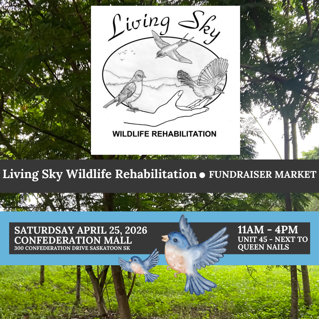 Join us at the Confederation Mall for the Living Sky Wildlife Rehabilitation MARKET Fundraiser!! Come and explore some unique items while supporting a great cause!!